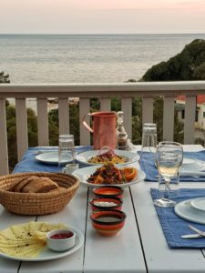 Loukoulos started its trip on July of 1989 and since then remains a stable value for hospitality and quality as well. Giorgos and Katerina Kiloukiotis, the owners, shaped the mentality of our little family business on making our guests feel like home, like having their vacation and dinner in their cottage by the sea. Our kitchen is based on greek traditional recipies from our grandma Flora, on which we stay loyal with some twisted additions. The yard of the restaurant lies above the sea with view to the Aegean in an olive garden, isolated from the street and the noise. Today we, Flora and Elpida, the second generation continue the family business in the same line in order to offer you beautiful moments and memories.